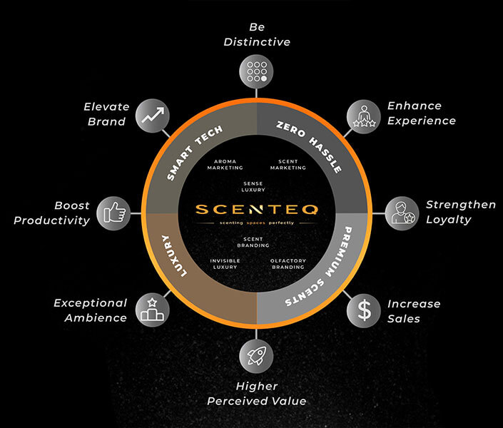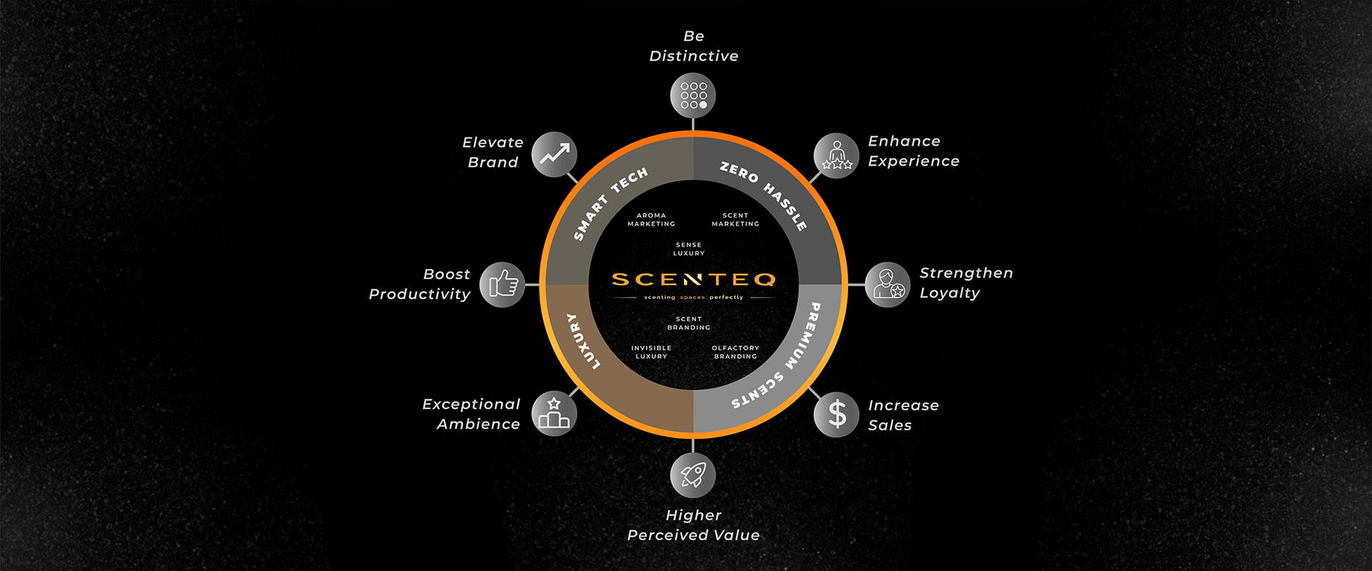 We believe that setting the perfect atmosphere is the cornerstone of crafting exceptional customer experiences, that leave a lasting imprint. At SCENTEQ we elevate your space through the art of fragrance. Our end-to-end solutions are tailored to meet such unique needs and goals of each business we work with